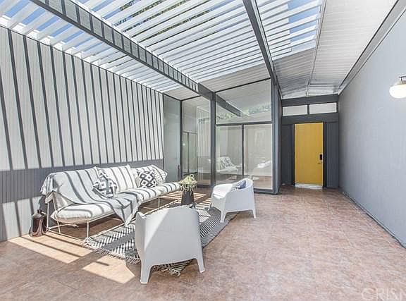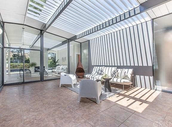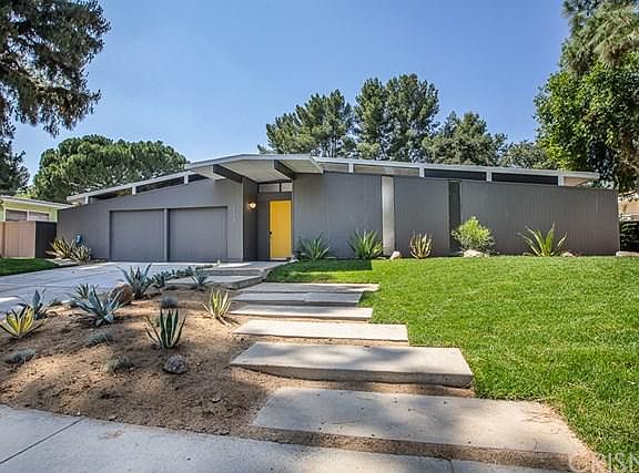This amazing "Joseph Eichler" Mid-Century Modern Home has just undergone a beautiful designer remodel, is situated in a prime tree-lined neighborhood & priced to sell quickly! The entrance to this wonderful property boasts a private enclosed outdoor court yard / Living Rm., architecturally designed to blend the outdoors into the warm living space... spilling into the bright open floor plan w/ walls of glass & high-beamed ceiling throughout. There'a a lg. sun-filled "Entertainers Living Rm." w/ brick fireplace & upgraded wood flooring throughout... opens to the spacious Dining Rm. which overlooks the tranquil & private grounds... a Lg. Upgraded Chef's Kitchen w/ neutral stone counter tops, custom tiled back-splash, lg. center island, sleek stainless steel appliances & lg. walk-in pantry.... flowing into the separate cozy Family Rm. Additionally, there's 2 upgraded designer Baths & 4 Lg "Family Sized" Bedrooms w/ hardwood flooring & mirrored wardrobe sliders... One of which is "Elegant Master Suite" w/ lg. walk-in closet, upgraded private Bath w/ oversized shower & stone-top vanities. Extras include: a 2 Car Garage w/ direct access, BRAND NEW designer fixtures / hardware & BRAND NEW interior & exterior paint. The Entertainer's Backyard proudly features beautiful mountain views, an inviting & sparkling "Grey Bottom Pool", lush & mature foliage offering shade & privacy that's absolutely perfect for hosting your family & friends. HURRY... This gem won't be available for long!