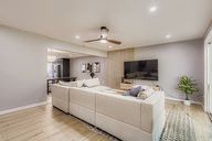 - Breakfast Bar, Ceiling Fan(s), Stone Counters, Double Vanity, Electric Dryer Hookup, Kitchen Island, No Interior Steps, Open Floorplan, Primary Bedroom on Main, Recessed Lighting