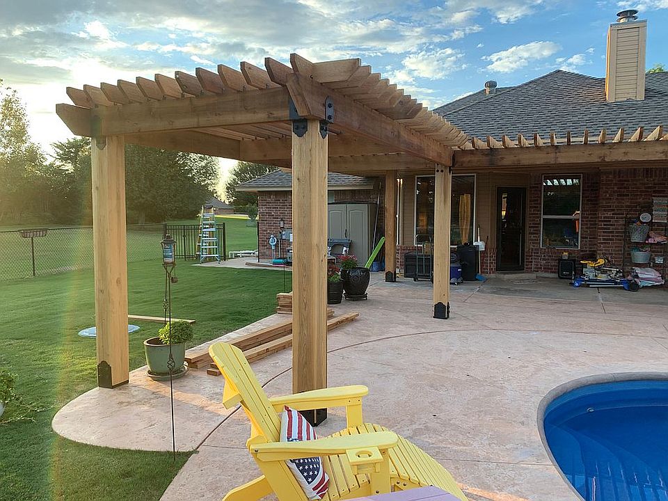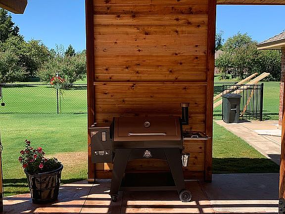 In 2020, a 14’x16’ pavilion was added with an outdoor TV. Also one pergola 8’x26’ with smoker on west end of pergola and granite counter top area. From this end another 8’x16’ pergola with bed swing. All of this constructed with large dimension rough cedar. In 2020, material cost alone for this was over $30,000.