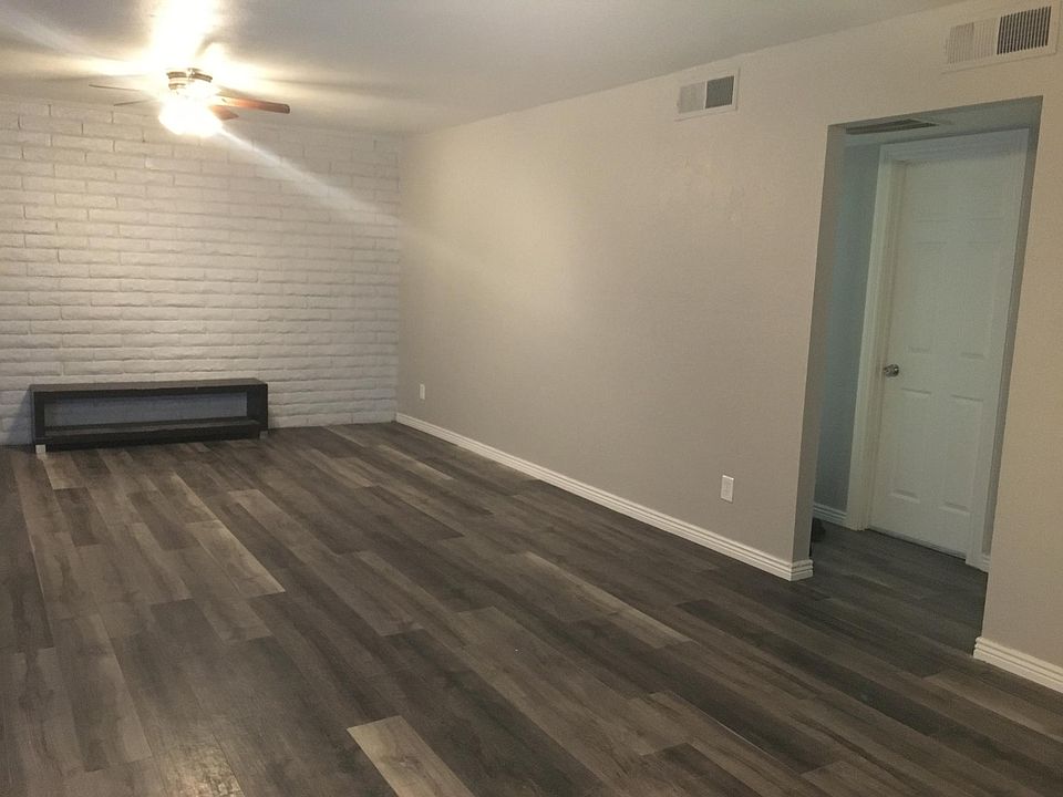 This is a duplex with 2 bedrooms, 1 bath, vinyl plank flooring throughout, freshly painted, Stainless appliances in the kitchen , dual sinks in the bathroom. Laundry hook up on site. Private backyard with a view of Superstition mountain. Owner pays water and trash, renter pays electric No pets allowed.