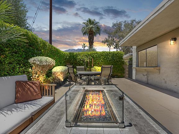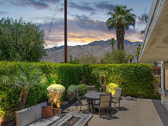 Recently Reduced - Exceptional Opportunity! Stylish Desert Living in a Donald Wexler-Designed Home. Enjoy the privacy of a single-family home with the convenience of a condo in this architecturally significant 1,050 sq. ft. end-unit residence at Sagewood--designed by legendary modernist Donald Wexler. Situated on a premium lot within one of Palm Springs' most iconic communities, this rare offering captures the essence of mid-century design with timeless appeal and effortless indoor-outdoor flow. This 2-bedroom, 2-bathroom home is thoughtfully designed to maximize natural light, privacy, and livability. The spacious open-concept living, dining, and kitchen area is ideal for entertaining and everyday living. The kitchen features new white quartz countertops, a modern sink, and a breakfast bar, blending style, convenience, and functionality. Floor-to-ceiling windows and expansive glass sliders in the living room invite the outdoors in, opening to a private, south-facing lush garden patio with spectacular mountain views. Adorned with a gorgeous hedge, this serene outdoor space offers natural beauty, privacy, and a perfect setting for relaxation or entertaining guests. The primary bathroom has been fully remodeled, offering a luxurious spa-like experience with high-end finishes and thoughtful design. Additional highlights include an attached garage, an extra-long driveway for convenient guest parking, and prime end-unit positioning that enhances privacy and quiet enjoyment rarely found in condo living. The home is being sold furnished, offering a turnkey opportunity for full-time residents, vacationers, or investors. Sagewood is a low-density, 18-acre community with only 108 homes--one-third of the site dedicated to open green space. The landscaping is lush and meticulously maintained, featuring mature desert trees, vibrant flora, and expansive greenbelts. Community amenities include three sparkling pools with spas and a newly upgraded pickleball/tennis court, professionally installed by the same company that crafted the Indian Wells Masters courts. The HOA is financially strong and proactive, with the community already taking steps toward historic district designation--potentially unlocking property tax savings under the Mills Act. Just minutes from downtown Palm Springs, shopping, dining, and cultural attractions, this home offers iconic style, an unbeatable location, and an exceptional lifestyle.