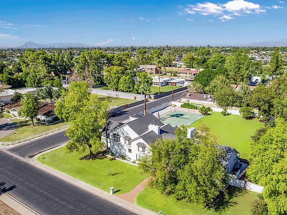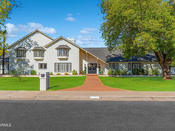 Welcome to the Arcadia of Northeast Mesa—an inspired, fully reimagined modern country farmhouse with a rare basement, set within one of Mesa's most cherished and charming communities. Perfectly situated on a generous and gracefully landscaped .8-acre corner lot in the prestigious Hill View Acres community, this residence stands as one of the neighborhood's signature properties—an area renowned for its stately custom homes, expansive lots, and timeless character. From the enduring quality of its brick-and-block construction to the home's entirely updated systems, refined architectural lines, elegant finishes, and thoughtful incorporation of modern conveniences, every inch has been meticulously redesigned for its next discerning owner.