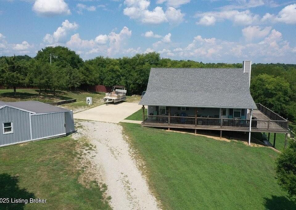A unique property just minutes from the Chowning Lane boat dock on Taylorsville Lake. There is room for family and friends with majestic views of the surrounding area. Primary Residence was custom built in 2021. A Vinyl sided 3 bedroom, 3 bath home with 3/4 wrap-around deck and loads of concrete parking area. First floor includes a combination kitchen/dining area/den with vaulted ceiling. Propane fireplace plus lots of windows to allow for plenty of natural light. Kitchen has a full line of appliances, beautiful cabinetry plus an island with bar area and cooktop. 2 bedrooms and a full bath round out the first floor. Second floor has nice landing overlooking the big den below plus a bedroom and full bath. The finished basement has a large den, office and potential 4th bedroom. There is a 1260 sq. ft, secondary residence that can be used as a mother-in-law suite or a place for family and friends to come visit and stay. It has potential for 2 bedrooms, kitchenette, den, laundry and full bath. there is a deck off the east side of this home. Enjoy the morning sun or be in the shade from the evening sun. Additionally, there is a 3 bay shop garage with an attached shed for boat or equipment storage. Deer and Turkey are plentiful and there are 2 deer shooting houses and a deer feeder ;ocated on the property as well. This property is located about 40 minutes from Louisville and has easy access to Lexington, Taylorsville, & Bardstown. Come take a look at this hidden gem in central Kentucky.