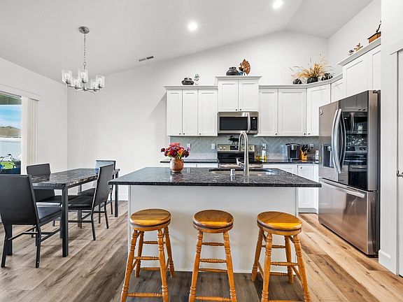MLS# 287904 This well-maintained, 3-bedroom, 2-bath home offers a like-new feel without the wait, all in a peaceful country-like setting. The raised vaulted ceiling perfectly complements the open floor plan, creating an airy and spacious feel. The kitchen is a standout, featuring granite countertops, soft-close cabinets, and handy sliding shelves for easy access. Designed for privacy, the split-bedroom layout is flexible for all household needs. The primary bedroom is a true retreat, complete with a walk-in closet and a bathroom that features a double vanity for extra space and storage. Step outside to the covered patio and enjoy a generously sized, low-maintenance yard, which even includes raised garden beds for those with a green thumb. Plus, with quick access to I-82 just minutes away, you can get where you need to be fast. Contact your favorite realtor today for a private showing!