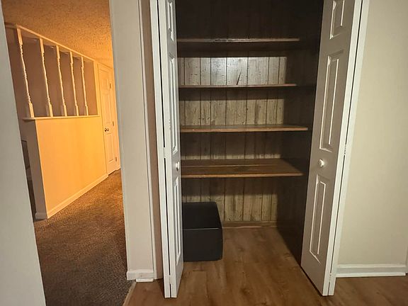 Upstairs unit. Carpet throughout apartment- large kitchen with plenty of storage and counter space- back patio- two full bathrooms-