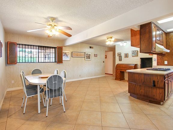 Situated in the prime Upper South Shores neighborhood on a quiet street, this single level home offers spacious kitchen great room featuring oak cabinets, Corian counters and tile flooring, in addition there is a large formal dining room with fireplace and a huge living room with open beam ceiling and it's own gas and wood burning fireplace. Sliding doors lead out to a secluded patio offering a serene setting for family and guests. The low maintenance grounds provide convenience and easy care. The Master bedroom has walk in closet, vanity/make up area and hardwood flooring. The second bedroom has hardwood flooring, mirrored wardrobe closet doors and the third bedroom has wall to wall carpeting and mirrored wardrobe closet doors. Combination ceiling/ light fans in all 3 bedrooms and kitchen eating area. Tile flooring throughout the entry, hall way and the formal dining room. Double attached garage enters into kitchen.