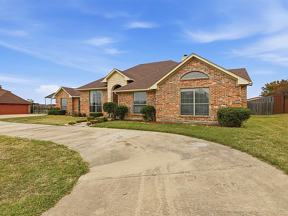 Well maintained single-story brick home with classic curb appeal and a large backyard designed for everyday enjoyment. Inside, the home offers a functional layout with defined living and dining spaces, neutral finishes, and abundant natural light throughout. The spacious living room features a stone fireplace and large windows overlooking the backyard. Tile flooring highlights the main areas, with carpeted bedrooms for added comfort. The primary bedroom includes a vaulted ceiling and en-suite bath with dual sinks, soaking tub, and separate shower. Secondary bedrooms are well-sized and versatile. Enjoy outdoor living in the private backyard with a covered patio and in-ground pool, perfect for entertaining or relaxing during Texas summers.