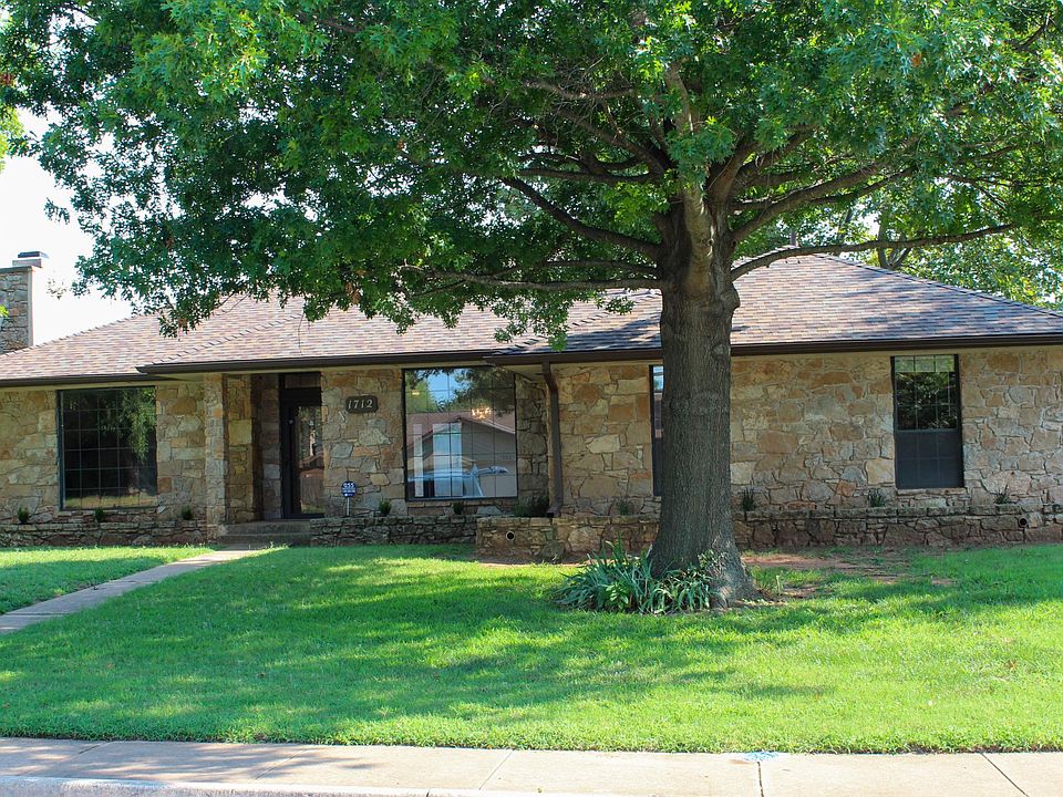 Located in quiet and well cared for neighborhood of Forest Oaks. Freshly remodeled, stone ranch style home featuring large windows, high ceilings, spacious living room with built ins and fire place, and large dining room. Updated kitchen with double ovens, new Kitchen-Aid cooktop, new refrigerator, new dishwasher, lots of storage, and breakfast area with patio door. Master suite with patio door, master bath features walk-in shower, large soaking tub, double sinks, and walk-in closet. Two additional bedrooms, hall bath with double sinks, and laundry room. Great outdoor space and storage shed in back yard. Impressive trees and three car garage! Don't miss this opportunity to live in the heart of East Edmond, walking distance to Spring Creek Plaza, and minutes from excellent Edmond schools. $2,050 deposit, non Smoking, additional nonrefundable pet fee per pet if applicable.