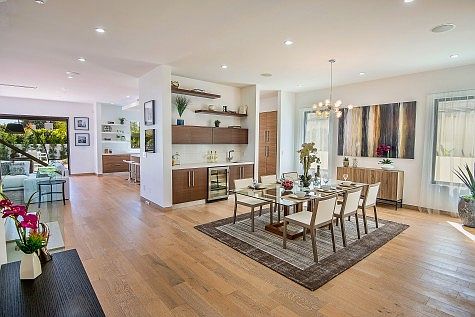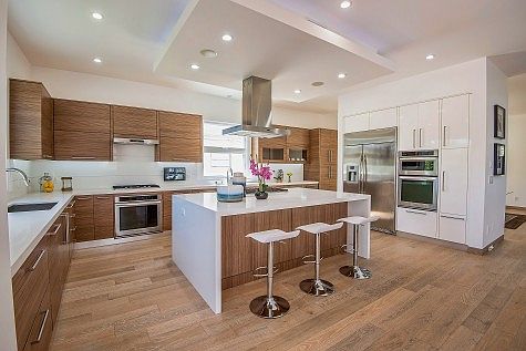 Contemporary Mediterranean masterpiece of new construction with unparalleled attention to detail. Thoughtful open floor plan with white oak floors allows for voluminous space and light. Dining room with Wenge cabinets, sink and wine bar is shielded from kitchen yet open to accommodate many guests. Large catering/kosher kitchen with Australian walnut cabinets, double ovens, sinks, and dishwashers, and waterfall quartz counter island opens to family room with stunning gas fireplace and dramatic glass staircase. Wall of glass doors leads to entertainer's back yard with built-in BBQ and dining pergola. Grassy area with room for a pool. Office/guest room with en-suite bathroom and powder room complete the first level. Upstairs, find a large master retreat and three additional bedrooms, all with bathrooms en-suite and walk-in closets. Whole-house sound system, security cameras and lighting all controlled by in-wall iPad or smartphone. Welcome home to the very best of modern living.