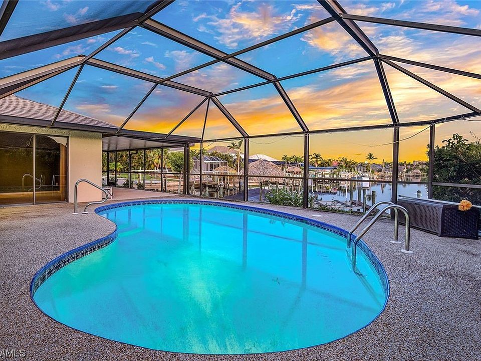AMAZING LONG CANAL VIEWS! Spacious 3 bed/2 bath + den, formal living, family room, Florida room, and formal dining. Southern exposure POOL HOME in desirable SW Cape Coral. Gulf access canal views from most rooms. Large dock for 3 boats. Sliders to lanai, pool, and waterfront. Million-dollar neighborhood with new construction. Close to Cape Harbour, restaurants, shops, Publix, medical offices. ALL ASSESSMENTS PAID on this gorgeous property. It is in a vey desirable Cape Coral area of the Southwest region. It boasts tons of sliders to the lanai, pool and waterfront. Very close to dining options as well as Cape Harbour and multiple shopping and grocery options. Do not miss out on 150' wide gulf access canal in lovely Florida weather! This is a great investment home or vacation rental. This home did great in Ian and only major damage was the dock, no flooding at this home