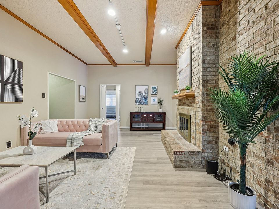 Welcome to this spacious fully furnished 4-bedroom, 2-bathroom home, with utilities included. located just 18 minutes from DFW Airport, offering easy access to downtown Dallas and Love Field Airport. The home features a fully furnished interior, including one King bed, 6 twin beds, and a fully equipped kitchen. The open floor plan and additional room provide comfort and flexibility, while the fenced yard adds to your privacy and convenience. Explore nearby attractions like parks, historic sites, and entertainment venues.
