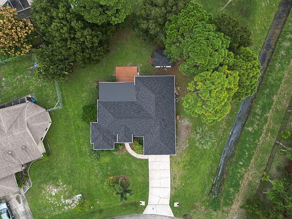 Discover a home that truly stands out in the Sebastian Highlands neighborhood, offering the freedom of NO HOA living. Freshly painted inside and out with a brand-new 2025 roof. This home offers a split floor plan with high vaulted ceilings, detailed trim accents, tile flooring in the main living areas, and carpeted bedrooms for added comfort. The oversized lot provides space to park a boat or RV, along with a 2-car garage that includes a built-in workshop. A detached shed adds extra storage, while mature trees and a built-out deck create a private outdoor oasis. Inside, enjoy two inviting living areas, including a bright sunroom with a new mini-split AC, abundant natural light, and charming tongue & groove wood ceilings. Conveniently located close to shops, restaurants, and local parks.