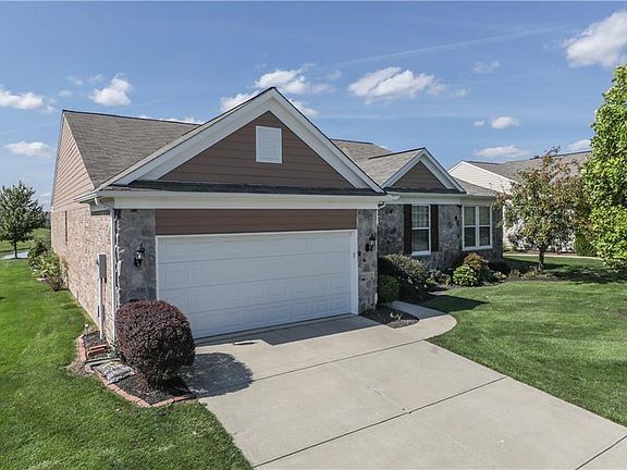 IMMEDIATE POSSESSION - Beautifully maintained all brick ranch w/full finished bsmnt, 9' ceilings throughout, 3beds, 3baths, hardwood flooring, crown molding, butler's pantry w/built-in wine fridge, gourmet kitchen w/breakfast room, breakfast bar, pantry, center island, double oven, and tons of counter space, lovely sun room and 16x13 screened porch overlooking pond and walking trails, along with composite deck. 2 car garage w/6' extension. Huge finished basement used as spacious family/rec room for entertaining or an addt'l bedroom or in-law suite. Extras include: security alarm, irrigation system, electronic air filter, tankless water heater, water softener, and sump pump w/backup. Loads of neighborhood amenities and BROWNSBURG SCHOOLS.