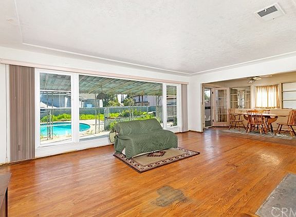 Don't miss out on this single level home, with Pool situated on 1/2 acre of land! Some original features including hardwood flooring in Living Room, Dining Room and hallway. All carpet has been removed. Newer roof and pool surface and decking replaced approx. 2017. The 2 car garage was converted to two additional bedrooms prior to the '70's. There is a semi-circular driveway and large carport structure for additional parking on the property. The home has some deferred maintenance, but with some TLC will be a stunning home.