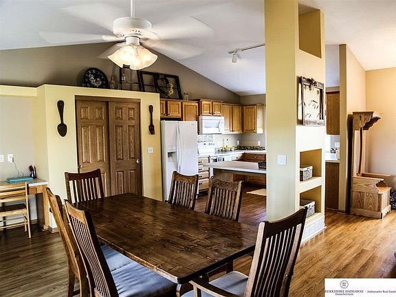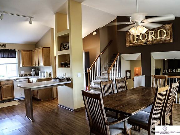 Beautiful home in the Elkhorn school district that is move-in ready! Open floor plan is warm & welcoming. Soaring ceilings w/ spacious kitchen, pantry, breakfast bar & built-in desk. Oak doors, trim & cabinetry. Great master with 2 walk-in closets. Dimmer in bedrooms w/ recess lighting. New bathroom tile floors. New roof in 2016. Finished basement w/ big storage room. Large 16x16 deck, fenced yard and shed that is grandfathered in -unique feature! Perfect location close to entertainment!