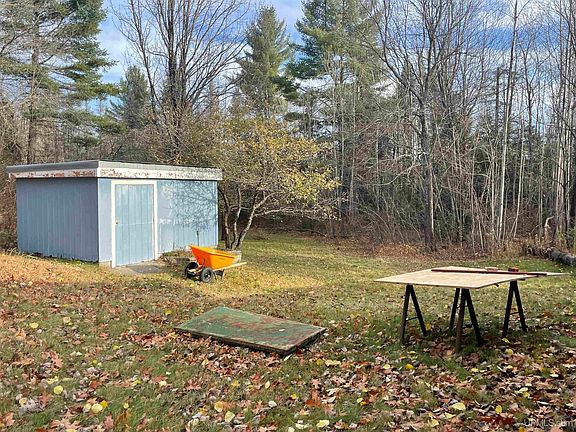 Priced to move quickly! This home was built in the late 1950's and has a Mid Century Modern look on the exterior while the inside is ready for you to complete as you see fit. The owner has started working on remodeling - floors are ready for vinyl or carpet, new metal roof and new well pump and holding tank. Situated on over an acre of land this home features 2 nice size bedrooms, 1 full bath, an eat in kitchen, breeze way and a covered front porch. The full basement is dry and could easily be turned into additional living space. The detached garage measures 13x25 with room for a vehicle and a workshop area. Home is located in an area known for its recreational opportunities such as hunting, fishing, boating, snowmobiling and ATV trails. This home has 3 apple trees, a cherry tree and wild asparagus. Home is currently being heated with a wood-stove in the living room. Central heat is hooked up but the furnace doesn't currently work.