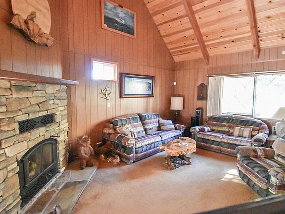 Your private mountain retreat! This stylish mountain home combines tasteful upgrades with classic cabin charm. Step into the living room and you can’t miss the towering rock fireplace with a wood-burning insert. With high ceilings and wood paneling throughout, this home has the perfect cabin feel. Featuring four bedrooms and two living areas, it’s ideal for hosting guests or splitting into two separate units to generate rental income. The exterior has been beautifully maintained, with a newer architectural composition roof and newly built decking that show pride of ownership. A bonus is the workshop, offering plenty of room to store all your toys. The spacious yard provides ample room for outdoor living while still offering a private mountain setting. This home has many great features at a fantastic price — see it today!