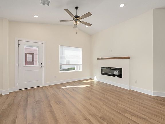 This beautifully crafted twin home features 3 bedrooms, 2 bathrooms, and a spacious 2-car garage. Step through the wide front door into a welcoming entryway with a convenient coat closet, leading into the living area complete with an electric fireplace. The open-concept design includes a bright kitchen and dining area with vaulted ceilings, perfect for both everyday living and entertaining. The kitchen boasts a walk-in pantry, quartz countertops, a center island with an eating bar, and stainless steel appliances. Step outside through the side patio door to enjoy the patio and backyard space with sod, sprinkler system, fully fenced yard on a shared irrigation well. The laundry room is located just off the garage and includes a drop zone for added convenience. General and special taxes have not yet been fully assessed yet. Estimated specials are approximately $180/month per side. HOA details are still being finalized, with fees to be determined. Purchase one side or both—ideal for multi-generational living or as a great investment opportunity! All information is deemed reliable but not guaranteed.