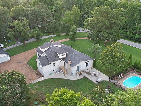 This is the one you’ve been waiting for! Welcome to this stately, sprawling ranch that combines classic charm with modern comfort. Nestled in a rural area on the quiet outskirts of town, you'll find this stunning home sitting on 2.43 acres, featuring 3 bedrooms and 2.5 baths. This home boasts beautiful hardwood floors throughout, creating a warm & cohesive feel. The spacious living room showcases wood-beamed ceilings and stone gas fireplace, ideal for both everyday relaxation and entertaining. French doors lead to a bright sunroom overlooking the park-like front yard, while the formal dining room provides views of the serene, backyard. The heart of the home is the generous kitchen, complete with stainless appliances, custom cabinetry, and a cozy breakfast room. A second fireplace anchors the family room, which opens to the backyard & patio and your own private in-ground pool. The primary bedroom includes a half bath and spacious closet, while 2 additional bedrooms offer large closets and another full bath on the main level. Upstairs, a versatile loft area is perfect for a home office, guest room, or creative space, with an adjoining unfinished area ideal for storage. The finished lower level features a bonus room, full bath and additional unfinished space that could serve as a workshop or even more storage. Outside, the back patio is an entertainer’s dream, perfect for family BBQs or poolside lounging. An oversized 2 car detached garage rounds out this exceptional property.
