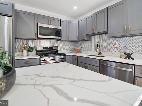 Welcome Home to your tastefully upgraded 4-bedroom, 2-bathroom home that perfectly blends style, comfort, and modern convenience. The open floor plan welcomes you with a bright and spacious living room featuring custom built-ins — ideal for displaying books, décor, or media. From the living room, the layout flows seamlessly into the dining area and the stunning chef’s kitchen, complete with a stainless steel appliance package, quartz countertops, and contemporary cabinetry. Step out onto the deck just off the kitchen — perfect for morning coffee, grilling, or relaxing outdoors. Upstairs, you’ll find generous-sized bedrooms with beautiful hardwood floors and plenty of natural light. Both bathrooms are tastefully finished with custom tile and modern fixtures, adding a touch of luxury throughout. The finished basement offers versatile living space, including a full bedroom and bathroom — ideal for guests, a home office, or an in-law suite. This home also features smart technology and thoughtful updates, including a Nest thermostat, Ring video doorbell, and smart lock. Major upgrades such as a new HVAC system and new windows ensure comfort and efficiency year-round. Move right in and enjoy the custom details, modern upgrades, and timeless design that make this home truly stand out. Welcome Home!