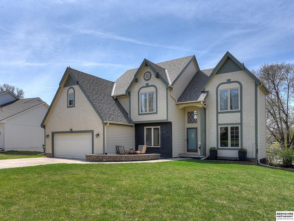 Showing start Saturday, April 29. Open house from 1-3 PM on Saturday, April 29. Check out this large, pre-inspected 2-story on over a 1/2 acre corner lot. The main floor boasts a 2 story entry, office, dining room/flex space, & two fireplaces. Deck access from living room and kitchen areas. Kitchen area has SS appliances with a spacious eating area/hearth room w/ fireplace, and expansive windows offering an abundance of light. All appliances stay, including washer & dryer. Huge master BR w/ sitting area, dual vanities, whirlpool tub, & giant walk in & cedar closets. Walkout LL has a great amount of space to utilize in the large Rec Room as well as two other flex room areas, and ample storage space. The possibilities are endless. Enjoy over 3,400 finished sq ft of living space! Enormous fully-fenced private backyard with lower and upper deck areas. Within walking distance to schools, close to Zorinsky Lake, and all conveniences. It’s a must see!