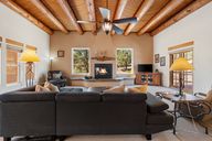 5 acres of amazing tree'd property with a 448 SQ ft ,three-mare motel & good-sized turnout. Large garage/Barn with tall rv garage door. Located off an easy dirt road. Can accommodate a horse trailer. The house is Santa Fe style with exposed Lintel above the windows & log beam, latilla ceilings. ...