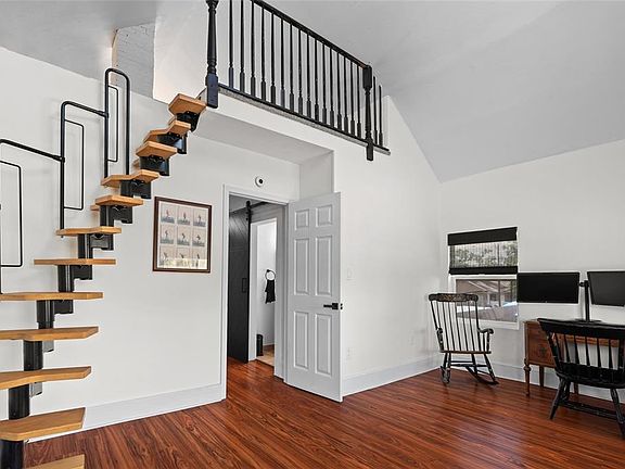 Modern vanityPrivate bedroom suiteGranite counter topsGuest bathroomSpiral staircaseBalcony with lounging chairsBrand-new gas range