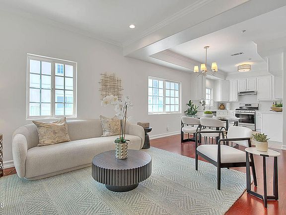 Welcome to this beautifully updated end-unit Spanish townhome, ideally located just one block from Main Street and Marengo Avenue in the heart of Alhambra. Offering both timeless charm and modern updates, this residence is a rare gem.Step inside to discover a bright, airy interior with natural light streaming through large windows. The living room features rich laminate wood flooring and brand-new recessed lighting. The spacious, open-concept kitchen is a chef's delight, complete with quartz countertops, new stainless steel stove, updated sink and fixtures, modern ceiling light, and a stylish chandelier over the adjacent dining area.The highly sought-after layout includes a main-floor bedroom--perfect for guests or a home office--and an updated full bath with a new white Carrera marble vanity, fresh fixtures, lighting, mirror, shower head, and toilet. A dramatic contemporary gold chandelier adds a designer touch to the stairwell.Upstairs, you'll find two generous primary suites, each with new ceiling lighting. The larger suite includes a private balcony and a custom-lit walk-in closet. Its en-suite bath has been tastefully remodeled with a double vanity featuring quartz counters, updated fixtures, mirrors, lighting, shower head, and toilet. The second suite also includes an upgraded private bath with new vanity, lighting, fixtures, and toilet.Additional features include a large laundry room, an expansive private garage with extra storage and new lighting, plus an additional carport space for a total of three dedicated parking spots. The home has been freshly painted throughout, with new carpeting and modern silver hardware completing the turnkey feel.With a Walk Score of 77, you're minutes from Target, Costco, Aldi, Alhambra Park, and top dining spots. This exceptional home offers refined living in a prime location--schedule your private tour today and experience the best of Alhambra living.