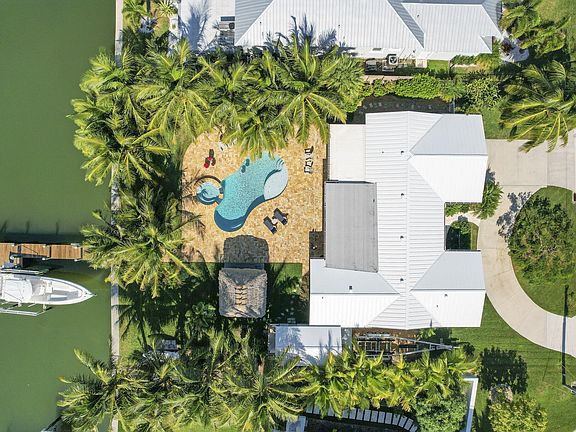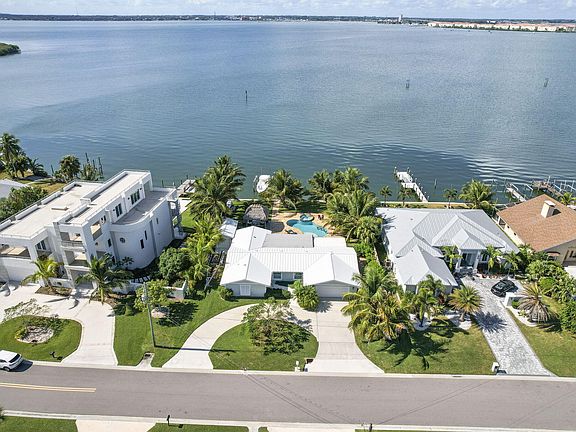 Amazing, one of a kind opportunity for this location. And the views ! A perfect home awaits you with every upgrade to the finest detail. A 48 ft. dock with 9ft deep water. Split bedrooms, Custom high end kitchen with a induction cooking, a pot filler for your coffee station, sea glass counter tops and beautiful wood cabinetry, with a pass through to a large dinning room for entertaining. Also a private den can be a separate quest area with its own half bath. This home has every high end upgrade done to perfection. Gorgeous salt water heated pool and a true Tiki Hut to sit and relax under and watch the colorful sunsets while the dolphin play. Plus a separate CBS garage/shed room for a boat or RV. Wow this is the one you have been waiting for.