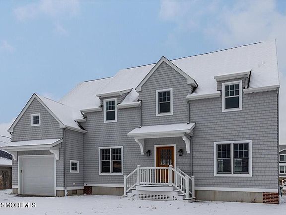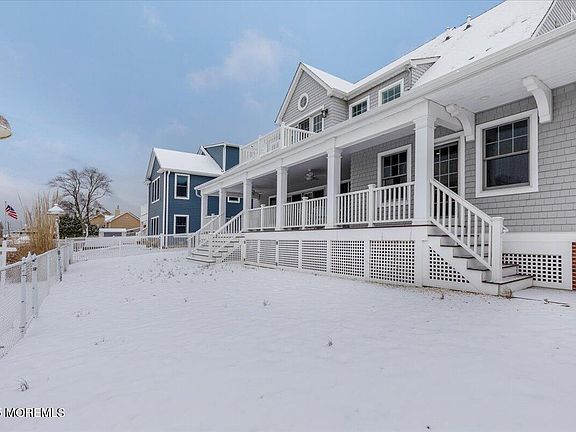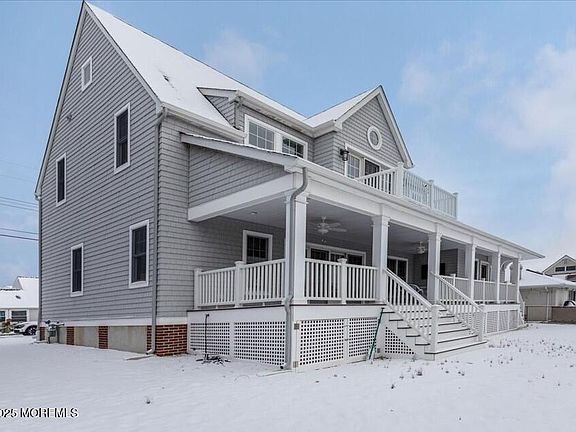 Spectacular Waterfront Custom-Built Home in Bay Head Shores. This stunning 4-bedroom, 2.5-bath home in Point Pleasant's desirable Bay Head Shores offers lagoon views and modern elegance. Perfect for year-round living or a vacation retreat. The first floor boasts an open floor plan with a custom floating staircase, a gourmet kitchen with a quartz island, dining area, workout room with half bath, and an expansive covered porch overlooking the water. Upstairs, the primary suite features a sitting area and full bath, complemented by three additional bedrooms, a hallway bath, and a den with private balcony. The property has 75 feet of bulkhead waterfrontage, a multi-level dock for two boats, and secure storage room for gear.