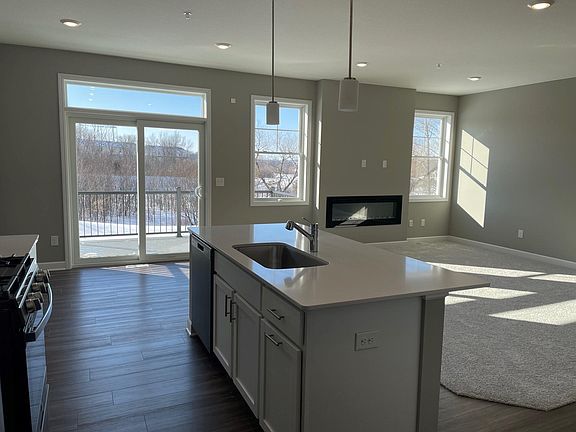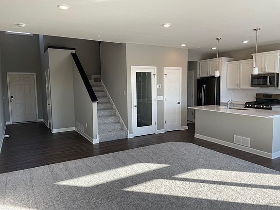 Just completed & move-in-ready! On premium homesite with nature views. Lennar's "Liberty" Townhome Collection-Richmond Floorplan (interior location). Spacious & light-filled, three-levels with finished, walk-out basement. Rowhome-style with large windows front & back. Open main level floorplan with 2-story foyer, 9-ft. ceilings, electric fireplace and deck. Designer kitchen with white cabinetry, quartz countertops, slate-finish appliances, gas stove, center island, backsplash, pantry closet & more. Upper level features three bedrooms, two bathrooms & laundry room. Spacious owner's suite with large walk-in closet and private bath with 5-ft. shower & double-sink vanity. Finished lower level/basement with rec room, bedroom, 3/4 bath, storage & walk-out to back yard. Complete with window blinds and Lennar's "Connected Home" smart features. Two-car garage. New Construction & Manufacturer Warranties. Convenient & quiet location.
