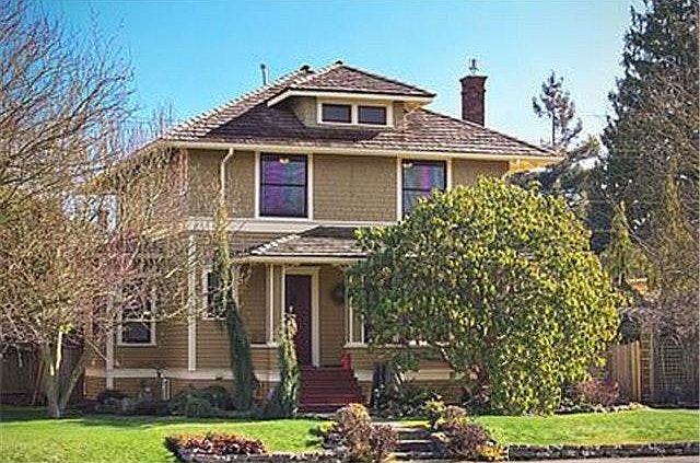Gracious American Foursquare Vintage Beauty Surrounded by Stunning Gardens. Featuring 4 Bedrooms, 2 Baths and 2600 approx sq ft, step inside past the large private front porch and discover lovely wood floors, large living and dining rooms, custom gas fireplace, huge gourmet kitchen. The home is graced with period features, arches, original moldings, doors, banister and rippled glass. Enjoy the spacious master, large rec room, jetted tubs, detached office/studio & peaceful water feature. Owner is licensed real estate broker in WA state.