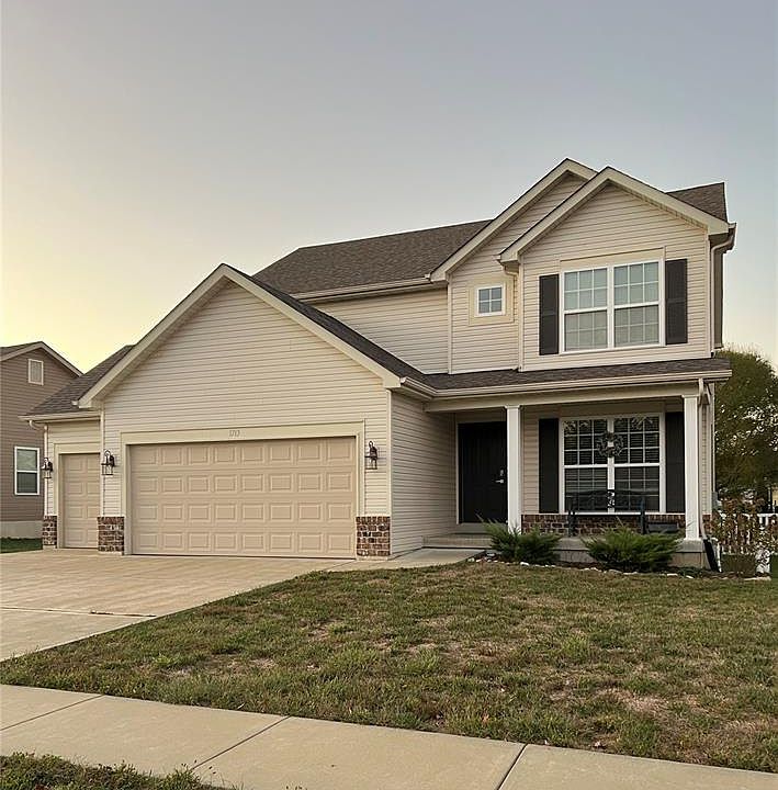 The Concord built by Flower and Fendler. Welcome home to this beautiful 4-bedroom, 2.5-bath two-story in the sought-after Villages at West Lake community. The Craftsman-style exterior and spacious 3-car garage create great curb appeal, while inside you’ll find an open, light-filled layout with luxury vinyl plank flooring and six-panel doors throughout. The kitchen serves as the heart of the home with 42" upper cabinets, GE appliances, and plenty of space to cook, gather, and entertain. Upstairs, the primary suite offers a walk-in closet, dual vanities, and a step-in shower. Step outside to the rear patio, perfect for morning coffee or weekend barbecues. Enjoy neighborhood amenities including a community pool, playground, and recreation area, all in a convenient location near schools, parks, and easy I-44 access. A perfect blend of comfort, convenience, and modern style awaits you at Villages at West Lake.