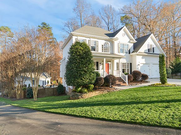 5 bedroom 4 bathroom beauty with full finished basement nestled at the end of a quiet cul-de-sac in the highly desirable Churton Grove community. 2 car garage with epoxy floor PLUS detached 16X30 garage/storage/workshop with separate entrance. Fresh interior paint. New roof 2019. New AC 2024. Hardwoods throughout 1st floor. Spacious family room features gas log fireplace with stone surround. Bright & open eat-in kitchen offers granite tops, gas range & subway tile backsplash. 1st floor guest suite. Large primary suite with double trey ceiling, tiled walk in shower with bench, separate soaking tub & generous walk in closet. Huge bonus room with adjacent office space. Basement offers large rec room (billiards table negotiable), wet bar, media room (projector and screen convey) & bedroom with full bath + tons of additional storage space. Expansive 3 season room with EZ breeze windows + deck. Beautiful, fenced backyard with stone patio & fantastic wooded views. Churton Grove amenities include a clubhouse, pool, playground, sports courts and trails. Located less than a mile to restaurants, groceries, gyms and schools & charming Historical Downtown Hillsborough. An active community known for its unique shops, eateries and community events such as Last Fridays, Summer Art Walks, and the annual Solstice Lantern Winter Walk, Hillsborough also boasts the landmark Mountain-to-Sea Trail access which winds past some of the town's most beautiful and historic sites. With all of this AND quick access to US Hwy 70, I-85/40, Duke University, UNC Chapel Hill and 35 minutes from RDU International Airport -- This is more than a home—it's a lifestyle!