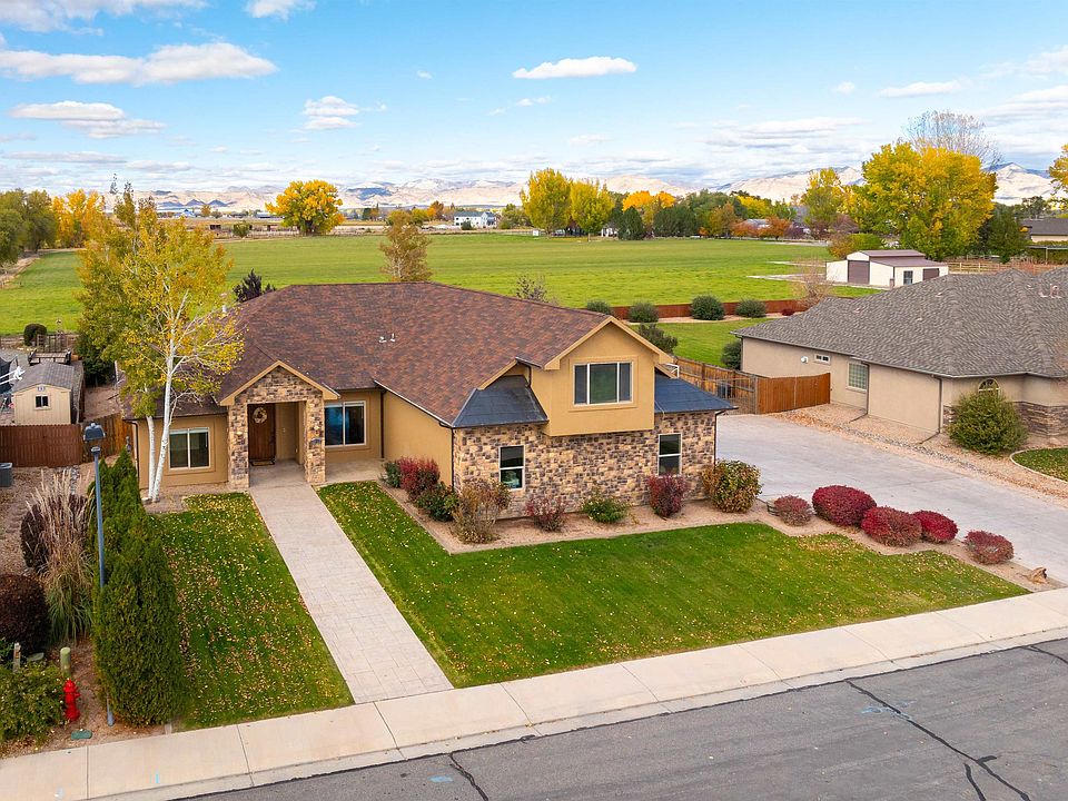 Just shy of 3500 sq. ft., this custom-built home has room for everyone. Featuring 4 bedrooms, office, huge bonus room, 3.5 bathrooms, oversized 3 car garage, gated 29x45 RV parking. This beauty sits on a large lot and backs to farmland with expansive views of the Bookcliffs. The beautifully appointed kitchen is the heart of this home with high-end cabinets, granite counter and copper accents. The primary suite is spacious and relaxing with a large bathroom, soaking tub and walk-in closet. The opposite side of the house features a junior suite with its own entrance and attached bathroom, jack-n-jill style bedrooms with a shared full bathroom. Upstairs you'll find the bonus room with a wet bar and full-size refrigerator. Top of the line heating & air conditioning with 4 zones. Schedule your showing today!