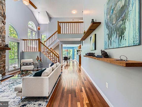 Welcome to lovely 1713 Nordic Hill Circle in the serene community of Tivoli, crowned by Fortune Magazine in 2024 as “One of the Best Neighborhoods to Live.” As you walk in past the home’s well-lit office (that could function as a 4th bedroom) & the half bath to your left, you’ll notice natural reclaimed redwood shelving along the right entrance wall & as the stone fireplace’s mantel. The cozy blue stone fireplace’s mantel was previously a support beam in a red wine tank in the 1900s, hence its rich, dark color. Three boho-style light fixtures greet you aerially in the foyer & over the high-ceiling staircase. The gourmet kitchen is so unique, teeming w/ numerous noteworthy features that even the most unexperienced homeowner chef would delight in. One is flooded w/ natural light & engulfed in a sea of blue from six, 5 ft windows that encircle the dining table. This vantage point from the dining area showcases the glistening inground pool, the jacuzzi hot tub & the mature landscaping w/in the scenic fenced- in yard & its many entertaining areas. The open-concept kitchen hosts a huge commercial-grade Taulsen refrigerator (w/ new compressor), 2025 Bosch double-wall oven including a convection oven/microwave, a cooktop stove & a hibachi grill for a culinary experience at its well-crafted island. Double pantries closets w/ deep shelving built in sit on both sides of the built-in Miele expresso coffee maker. Above the long gooseneck faucet over a farmer-style sink & gorgeous quartz countertops hang open shelving. All of the kitchen’s (& baths’) cabinetry is bamboo, tailor made in California for this home. As you pass the breakfast nook by the pantries & the 2nd fireplace towards the evergreens, you stroll through a set of 4-paneled accordion doors, unto your freshly-stained deck. Cookouts have never been as so easy because of this layout, w/ copious room, right off the kitchen, while still maintain eyes on the fun below. The cherry-colored cable-linked deck includes a newly-added barrier gate for additional safety. With a broad-leaf backdrop, 4 entertainment areas around the heated pool, including an outdoor bar for convenient poolside cocktails, you’re suited to never leave your own personal oasis. Off the pool deck, the basement’s hosts 2 sets of doors leading to an interior custom-made bar. This room is perfect for entertaining during all 4 seasons w/ its custom-statement wall of stained, reclaimed wood, gleaming quartz countertops & a high counter bar. Basement: Full bath for a post-pool rinse w/ a bamboo vanity, spacious laundry room & additional unfinished space, & recessed lighting throughout from smart, app-controlled, color-changing LED bulbs. Pool Upgrades in last 2 yrs: Custom-made pool cover, a custom-made spa cover, spa blower, pool diagnostics, pool cleaning robots, spa heater, pool heater, pool filter, & pool filter pump. Due to amount of power needed to heat both the pool/hot tub, solar panels reduced monthly electric bill by more than 50+% . Primary Suite Features: Nautically inspired cable-linked high ceiling design, a double vanity made of custom bamboo, jacuzzi tub, a sleek glass door shower w/ rain shower head, double walk in closets w/ built-in shelving & newly shampooed carpeting. Guest Suite: Bright natural lighting & sizable closets. Garage: 2-car garage w/ high ceilings, tile flooring & a built in workman’s bench w/ drawers & shelving. The home’s HVAC has a new compressor (’24) & Freon. Tivoli Perks: Free guest parking, a lake, snow removal, trash collection, tot lots, HOA events & residents can host private events. 5 min away: Glenmont Metro, Colesville Shop Center, German & Asian Grocery, Urgent Care, Dunkin, dollar store, a florist, a gas station, carry out options, Ledo’s, a bakery & a Sherwin Williams. 25 min: DC. If seeking a richly-designed home, a poolside oasis, copious spaces for entertaining & ideal storage, then this could be your new sanctuary!
