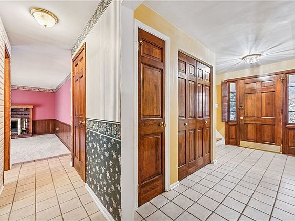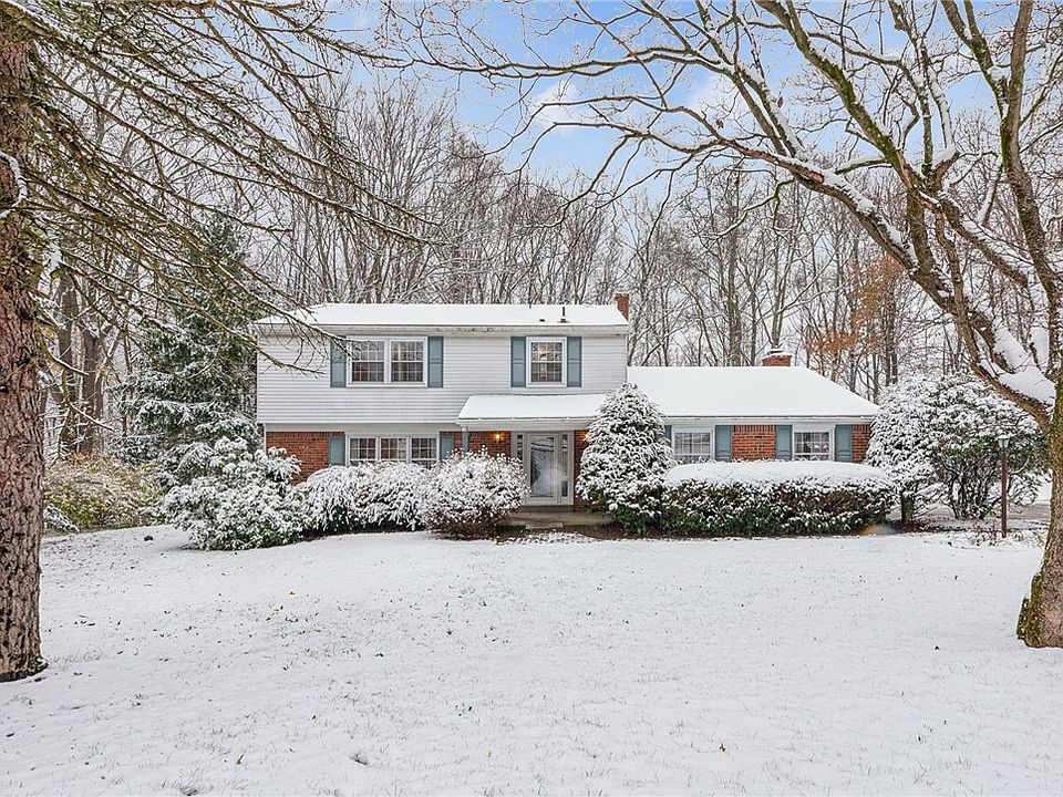 Welcome to your future dream home that you will love making your own! This spacious 4 bedroom, 2 story residence has something for everyone & is situated on nearly three acres offering privacy galore! As you step inside the entryway, you're greeted by the large living room with a picture window to allow in tons of natural sunlight. Having both an eat-in kitchen area, & separate dining room the space is ideal for entertaining! The adjacent 1st floor family room features a cozy gas fireplace & new carpeting! Step into the sunroom off the family room to enjoy year round views of the beautiful property. The first floor also includes a convenient powder room, laundry room, & access to the two car attached garage. Upstairs, find ample sized bedrooms with plenty of closet space & a primary bedroom with a full en suite bathroom including an updated walk-in ceramic shower. The property also includes a large storage shed and is completed with a brand new roof for peace of mind!
