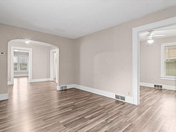 Two bedroom, one full bathroom home. Whole house has been freshly painted, new flooring and light fixtures. Screened in front porch. Unfinished basement, detached one car garage, nice size backyard.