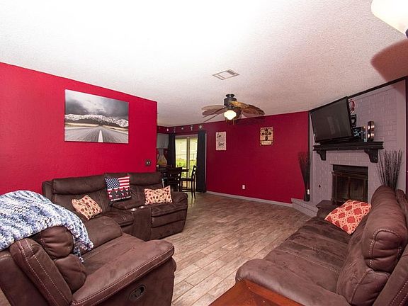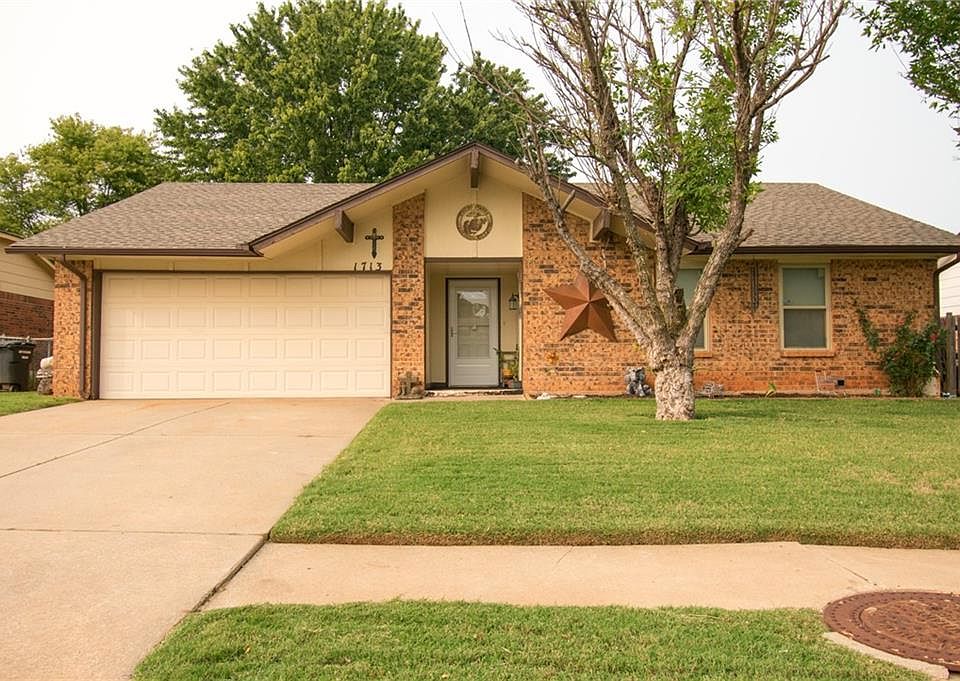 Wow! You're going to absolutely love this move in ready home in Moore! The 3 bed 2 bath home has updated wood look tile flooring in the living area, a spacious backyard, and plenty of storage. You'll notice the pride of ownership as soon as you walk in to the open living/dining area and see the quality of this home! This home has extra features like decking in the attic for extra storage and in-ground storm shelter in the garage. There is a beautiful park and walking trail just around the corner! Call to go see it today!