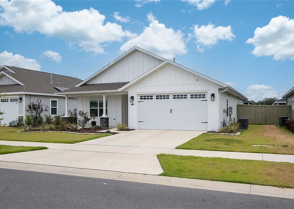 **SUMMER BONUS $5000 towards Closing costs and prepaid with a Successful negotiated contract closed by July 25th 2023** This stunning GRAYSON Floor Plan in Grand Oaks was the Builder's Model. Its charming craftsman aesthetic and comfortable living space span 2004 square feet, complete with 3 bedrooms and 2.5 baths, making it a Must-See. The split-bedroom plan provides ample privacy, while the wood cabinets with soft-close drawers, farmhouse sink, and sleek quartz countertops are only a few of the amazing features this home has to offer. Enjoy the convenience of a bar top overlooking the spacious great room, complete with three-door sliders that flood the room with natural light. The double trays in the living and master rooms, along with crown molding throughout, add an extra touch of elegance. The master closet with a built-in wood closet system makes the home practical, while the luxury vinyl planking offers a modern touch without the hassle of carpet.The smart security system, complete with a hardwired alarm system, Skybell doorbell with a camera, smart thermostat, smart garage door, and keyless entry front door lock, provides peace of mind and convenience. The living room is equipped with surround sound and a Sonos soundbar installed by SoundIdeas. The Hardi-board exterior, 30-year architectural shingles, radiant roof barrier, 15 SEER HVAC, gas tankless water heater, and R38 insulation in the roof and R13 in the walls offer efficient and low-maintenance living and speak volumes to the construction quality. Build an outdoor kitchen with the natural gas stub out provided so you can enjoy grilling in the cozy porch and entertain in the beautiful fenced-in backyard. Located across from Oak Hall and only a short drive from Butler Plaza, Celebration Pointe, the University of Florida, UF Health, and NFRMC, this home offers both luxury and convenience.
