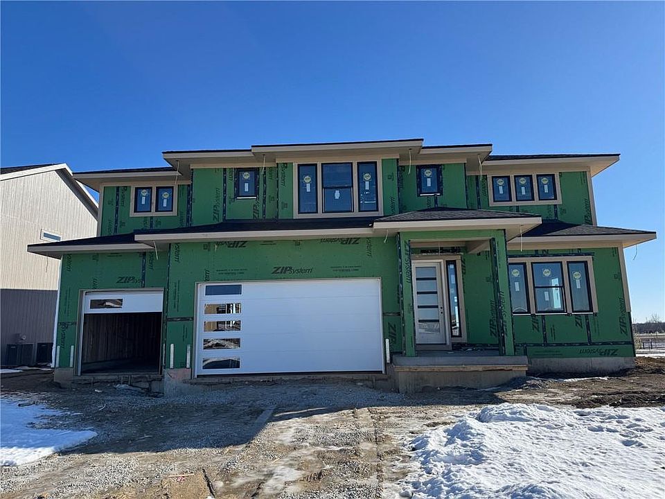 UNDER CONSTRUCTION--will be completed June/July 2025. **There is still time to visit the Inspired Homes Design Center and make limited design selections to customize this home!** The Contemporary "Opus II" Floor Plan in the popular Pryor Ridge community boasts 18ft ceiling in the great room with 10-foot ceilings throughout the remainder of the main floor, top-tier appliances paired with upgraded quartz countertops, and a prep kitchen. The design includes French doors leading to the office. The finished basement features a guest bedroom and full bath. Additional highlights include an under-cabinet lighting package, a modern trim package, wainscoting in the foyer, a coffered ceiling in the primary bedroom, a drop zone with a boot bench, built-in cabinets with floating shelves in the living room, and a deluxe free-standing tub. The overall aesthetic is modern and sleek with the eye-catching black windows and contemporary garage doors. Inspired Homes also includes extra deep garages, 8’ garage & front doors, irrigation systems, garage openers and gas cooking with built in SS GE Profile appliances, low-e Pella windows and doors, custom wood cabinetry, tray ceilings, and so much more! Located in the peaceful and highly sought-after Pryor Ridge neighborhood in Lee's Summit, this home offers a lifestyle characterized by both comfort and convenience. **Pryor Ridge Community offers its homeowners a sparkling jr-competition sized pool, playground, basketball & pickleball courts, off-leash dog park, open green space and walking trails.....all within a convenient and close location to shopping, restaurants, grocers, entertainment and highway access! (NOTE - photos are of a similar former Opus model, not the actual home).