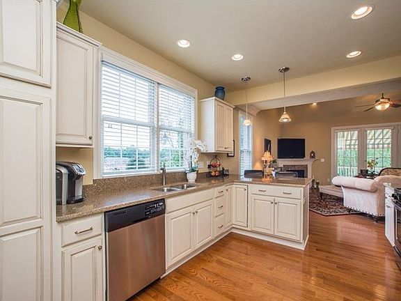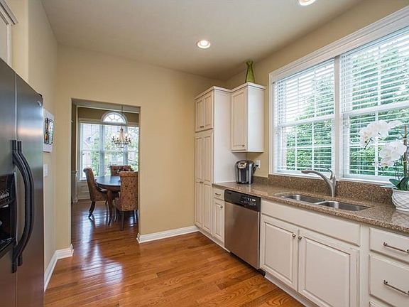 Amazing Patio Home in sought after Fields of Nicholson Community. Beautiful Hardwood flooring throughout the main living area and kitchen. Kitchen Features white cabinetry, granite countertops, stainless steel appliances including gas stove. Living room with gas fireplace opening to the private, covered deck with recently installed awning. Main floor master suite with jet spray tub/shower combo and walk-in closet. Great location in the community with tree-lined back yard. 2 Bedrooms upstairs with a TON of storage space and walk in closets, plus full bathroom. Full Finished Basement game room area w/ full bathroom, walk/out to covered patio and back yard. 4th Bedroom/Office located in the basement, as well as laundry and additional storage room areas. A must see...