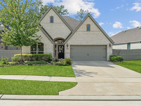 Welcome to this charming 4-bedroom, 2.5-bath Perry home in the sought-after Artavia community. Thoughtfully designed with upgraded fixtures throughout, this home features a spacious kitchen with granite countertops, stainless steel appliances, abundant cabinetry, and a generous island that opens to the family room and formal dining area. The primary suite offers a peaceful retreat with dual sinks, walk-in shower, soaking tub, and a spacious closet. Three secondary bedrooms are ideal for family, guests, or a home office. Step outside to a covered patio overlooking a private, landscaped backyard complete with a fireplace, fire pit, and hot tub—ideal for relaxing or entertaining. This outdoor space is sure to be a favorite spot for relaxation and entertainment. Additional highlights include a whole-home GENERATOR, gutters, and sprinkler system. Community amenities include fitness center, splashpad, nature trails, a café, and a 5-acre lake, just minutes from The Woodlands.