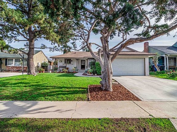 Charming, mid-century classic, single-story, 3 bed, 2 bath, 1185 sq ft home on quiet residential street in Old Granada Hills. Located in the highly desirable Granada Hills Charter School district! Beautiful curb appeal with fresh paint, well-landscaped yard, mature trees, covered front porch. Recently remodeled home features 2-car garage, gleaming wood floors, new paint inside and out, new sprinklers front and back, a new water heater, and a brand new roof! Enter bright and open living space featuring a dining area, wall of windows, and French door leading to back patio. The remodeled Kitchen offers quartz countertops, crisp white raised panel cabinets with stainless pulls, ample storage, built-in appliances, and leads to dedicated laundry room with access to back patio. Master bedroom with private bath. 2 more sizable bedrooms share the hall bath. Backyard boasts mature landscaping, generous patio with brick fireplace, and storage shed. Convenient to shops, restaurants, & nearby access to 118 & 405 freeways.