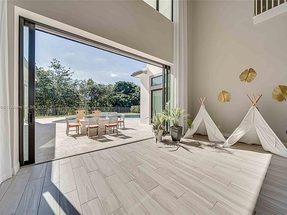 A stunning 2021-built estate by Toll Brothers, offering nearly 8,000 sq ft of modern elegance on a private 1-acre lot in Southwest Ranches. A grand two-story entry and lush landscaping invite you inside to a bright, open floorplan featuring 7 bedrooms, 8 full baths, two half-baths, and soaring ceilings. The chef’s kitchen boasts JennAir appliances, a massive island, and custom cabinetry, seamlessly connecting to expansive living and dining spaces. Enjoy entertaining at the full wet bar or outdoors by the heated zero-entry saltwater pool with a sun shelf and summer kitchen. An elevator, 3-car garage, smart-home tech, and serene views complete this offering. Set in a community near Weston, Davie, and top schools, a rare chance to own luxury without the wait.