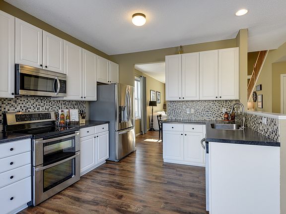 Beautiful two-story home in high demand "The Grove at Elm Creek". Many new upgrades and amenities including new stainless kitchen appliances, AC, water heater, roof shingles & washer & dryer. Deck overlooking large backyard. Basement features a media room with sound resistant wall & insulation in ceiling. Three car garage w/Epoxy floor & finished attic and pull-down ladder. Sprinkler system and security system.