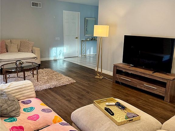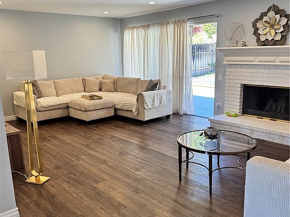 This single-story California ranch-style home in Granada Hills is located north of Rinaldi, within the highly sought-after Granada Hills Charter High School district, which includes elementary, middle, and high school levels. The home features a formal entry with tile flooring, leading to a bright kitchen with oak cabinets and a pass-through to the adjacent dining area. The airy dining space opens to the side patio, while the spacious living room includes recessed lighting, a brick fireplace, and a sliding glass door to the backyard. The master suite offers a large closet and sliding glass door access to the backyard, along with a ¾ en-suite bath. Three additional bedrooms have mirrored closets, large windows, and share a full hall bath. The backyard provides ample space for outdoor entertaining. The wide, curved driveway offers plenty of parking, including room for an RV, and leads to a 2-car garage with direct access to the home. Conveniently located near shopping, dining, and recreation, this home offers a perfect balance of comfort and convenience.