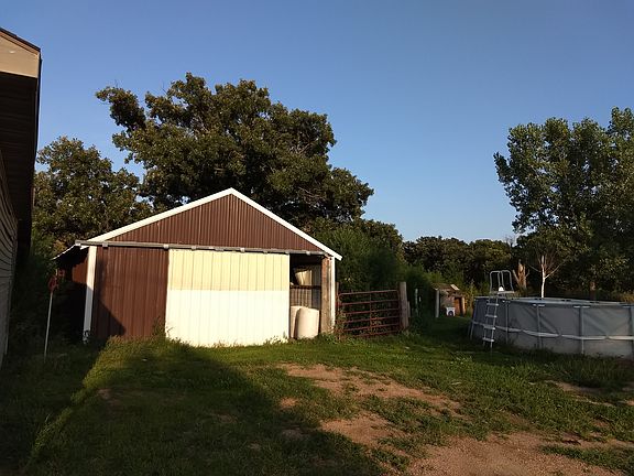 This ranch style home is beautiful! Living room, dining room, laundry room, and partial finished basement. It has security cameras, washer, dryer, dishwasher, large shop to the north, pole barn to the South with stalls and Corral. 3 hydrants in the yard for ease of access for water. Both shop and barn have electricity. The over sized 2 car garage has garage door openers and a work bench in the back. Fenced in front yard with chain link fence and the property is fenced in, ready for cattle, horses, sheep, or goats! Property has underground sprinklers in all of yard and orchard. Many fruit trees in the orchard! Property is just shy of 5 acres and in the Amherst School district. Newer roof, newer furnace and AC unit. The house has central air. There a septic tank but city water, and a wood stove in the basement. The creek that is dry most of the time, has plenty of trees for the wood stove! This listing won't last long, set up your walk through now!