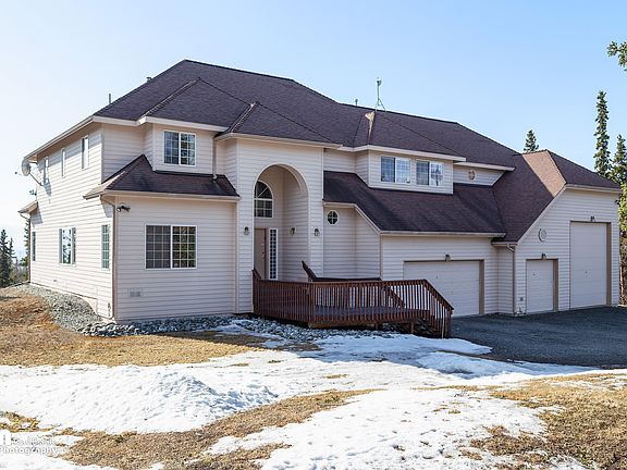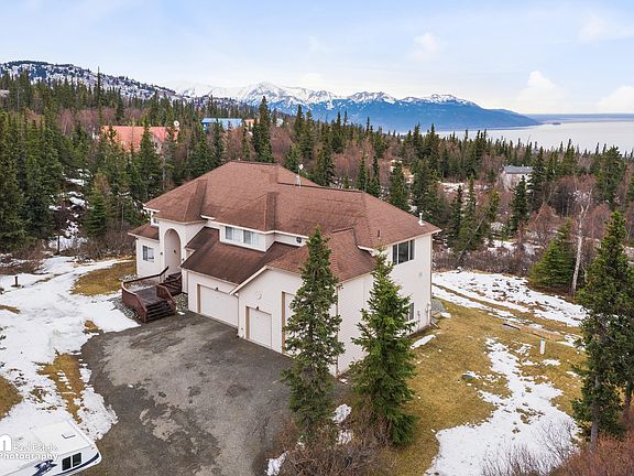 This Alaskan dream home offers you the joys of privacy over 2 acres but is easily accessible. Private maintained hiking/skiing trails on site with sounds of your creek! Almost each window has enthralling views of the inlet and mountains! Additional Office & Multi-use room., Chef's Kitchen, 16' luxury swim spa, screened porch, huge laundry room and mud room, 3 car garage + a huge RV bay and more!