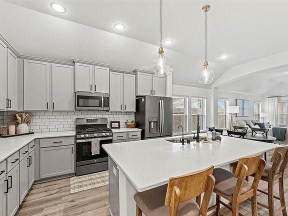 Beautiful 1-story home featuring 3 bedrooms and 2 bathrooms with an open, inviting layout. The island kitchen boasts Omega Stone countertops, slate appliances, and a gas range, seamlessly flowing into the family room with custom built-ins. LVP flooring extends through the entry, kitchen, utility, dining room, family room, and both bathrooms for style and easy maintenance. The spacious primary suite offers a dual sink vanity, soaking tub, separate shower with bench, and walk-in closet. Secondary bedrooms provide flexibility for family and guests. Enjoy outdoor living with a covered patio and no back neighbors for added privacy. Additional upgrades include a reverse osmosis system and sprinkler system. Zoned to Waller ISD. Easy access to Hwy. 290 and the Grand Parkway. Community amenities include a rec. center, swimming pool, splash pad, playground and tennis courts. Make your showing appointment today!